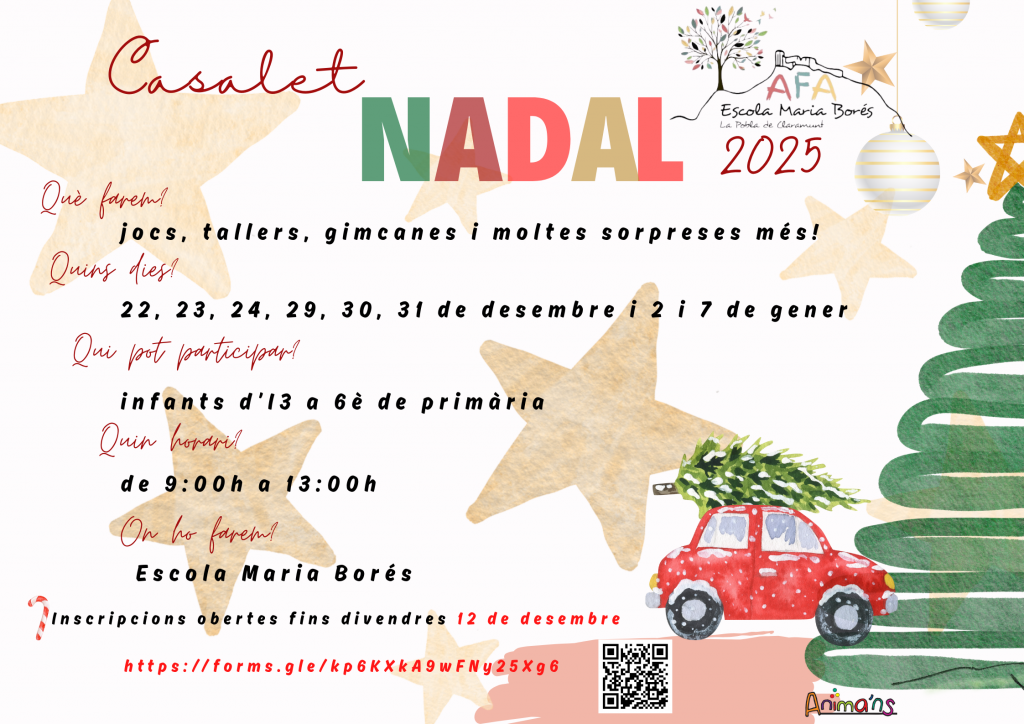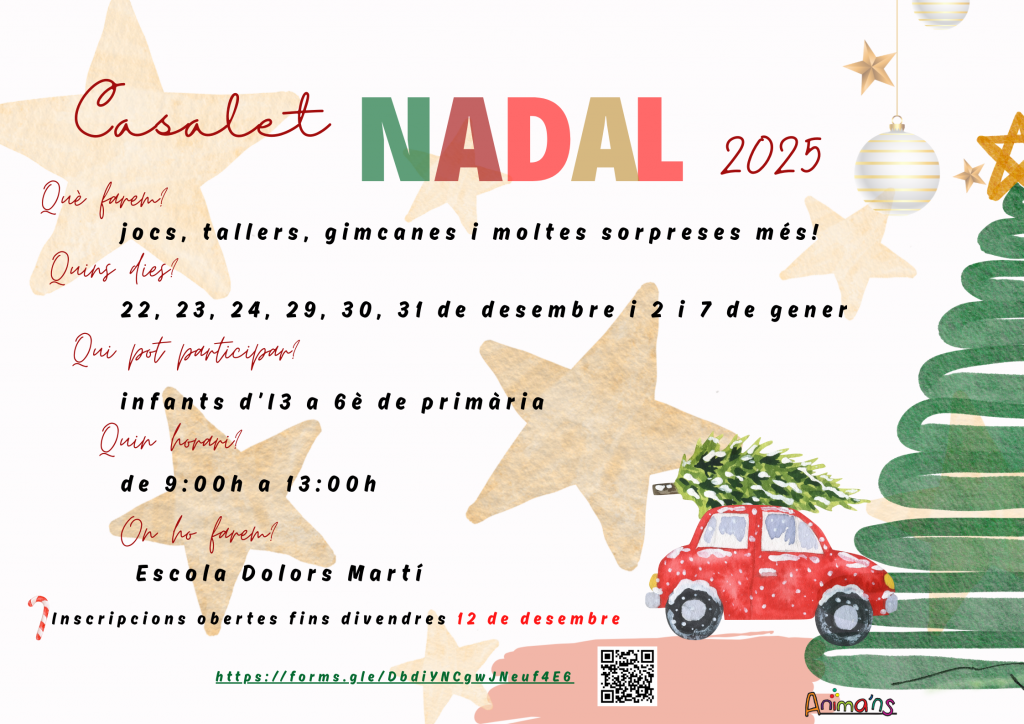 Us facilitem la informació dels Casals que organitzem per Nadal, dins de cada formulari, trobareu més informació.